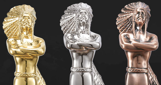 The Indian Prize (also known as the "Little Golden Man") was designed from the first three-dimensional selling point in the United States to display the Indian statue of the tobacco shop. The trophy was designed by New York designer Eliot Axelrod. With the development of the industry, Xiaojinren has gradually been valued and favored by global brands and retailers, becoming an Oscar in the industry.