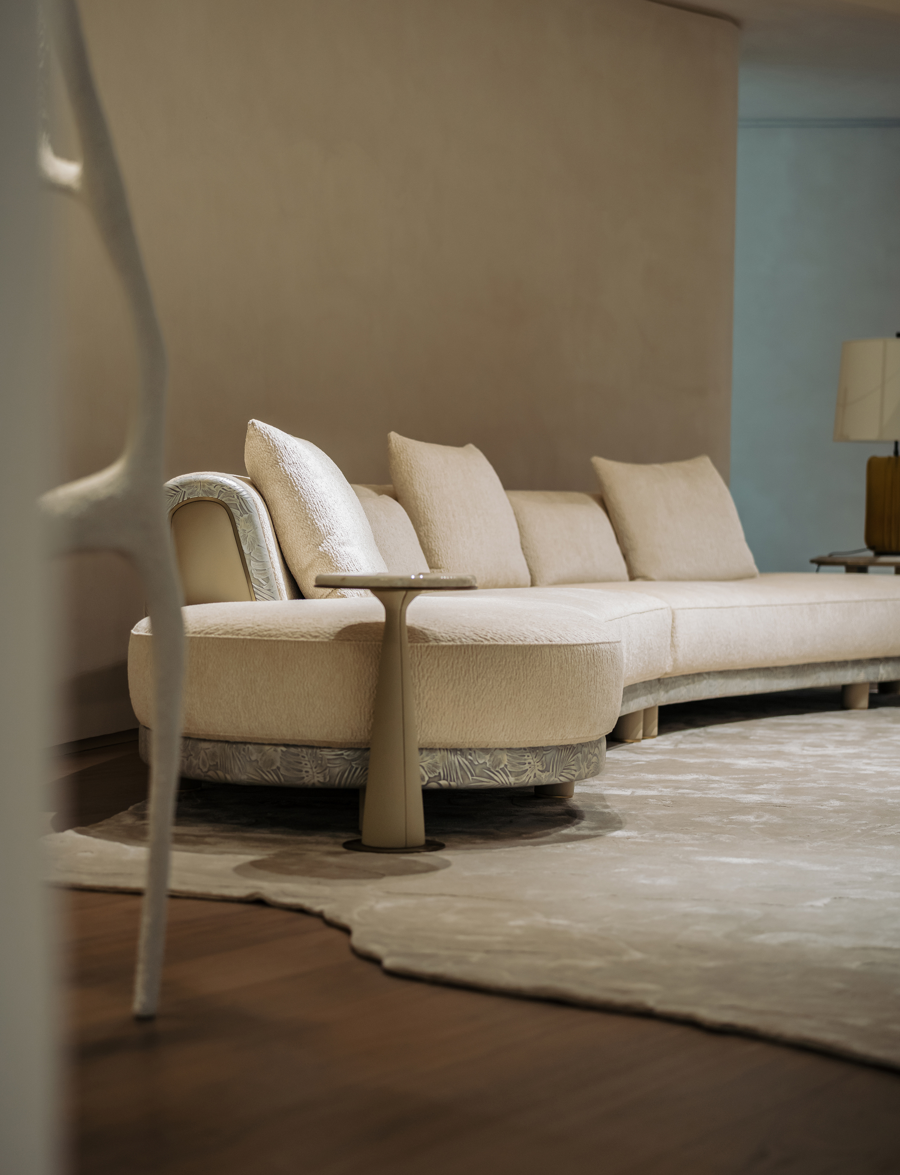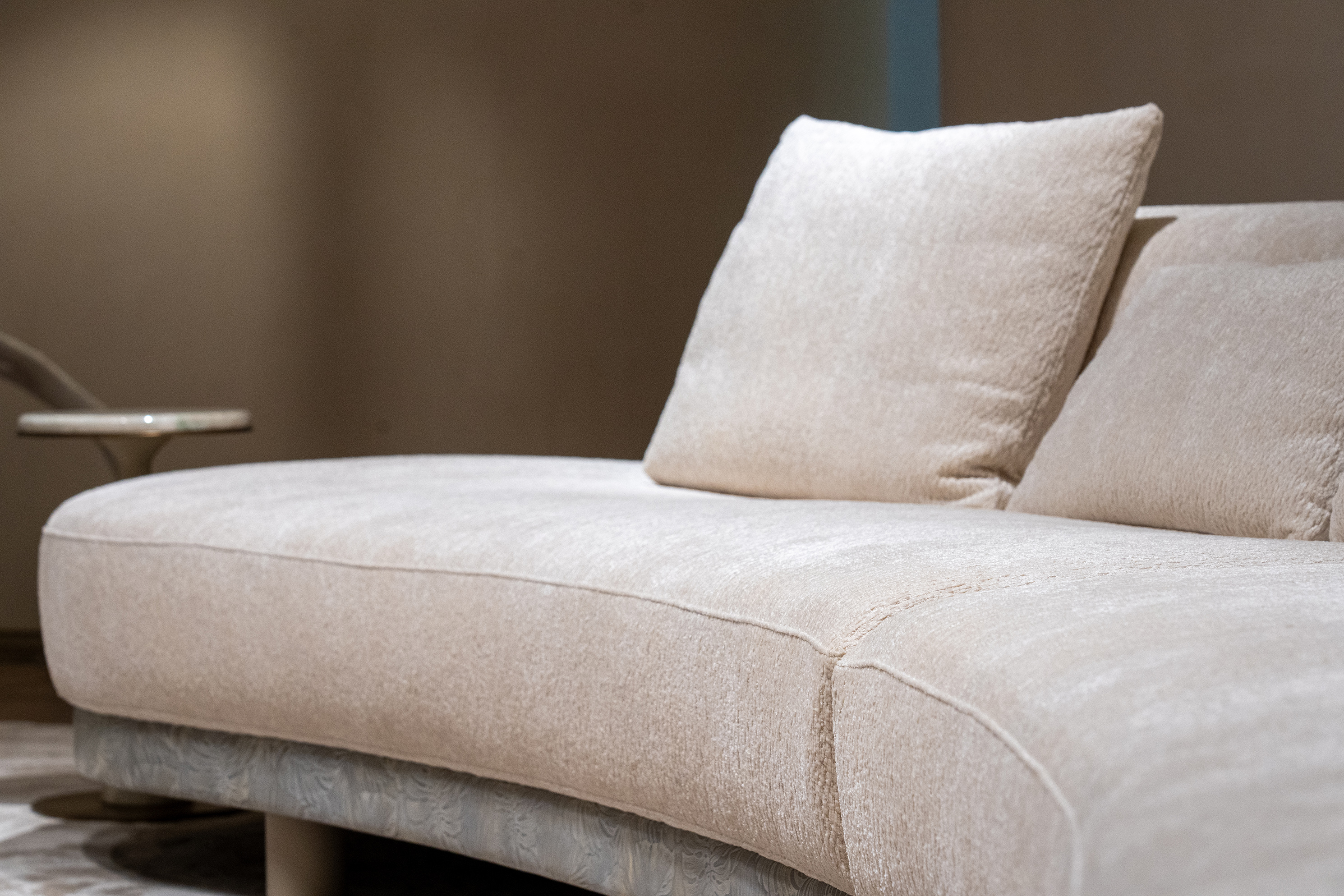 The Island Sofa departs from PABLO NOW’s signature bold colors and intricate designs, and embraces a minimalist elegance. With its soft, flowing curves and serene color palette, it captures the essence of modern Italian design, bringing a relaxed, casual atmosphere to any space. The sofa offers a sense of steadfast stability, while exuding a calming, inclusive presence.