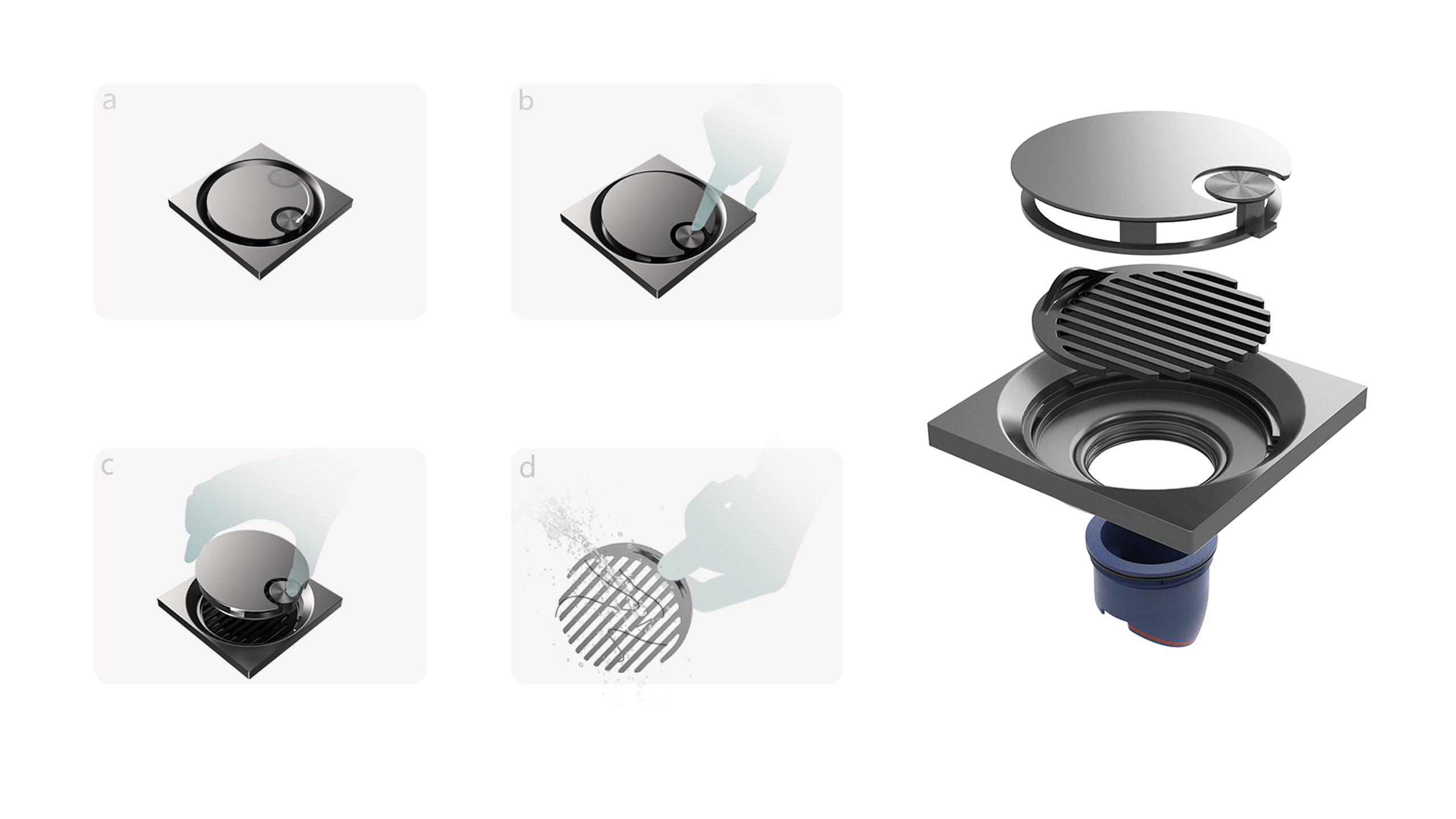 The JiXi New Concept Series floor drains break through the traditional design stereotype of floor drains. They incorporate the design elements of the sun and moon, endowing the product with a new soul. The press-to-open interaction for cover removal enhances convenience and aesthetics, while also completing a full range of floor drain products covering dry areas, shower areas, and washing machines. This provides customers with a comprehensive matching solution.
