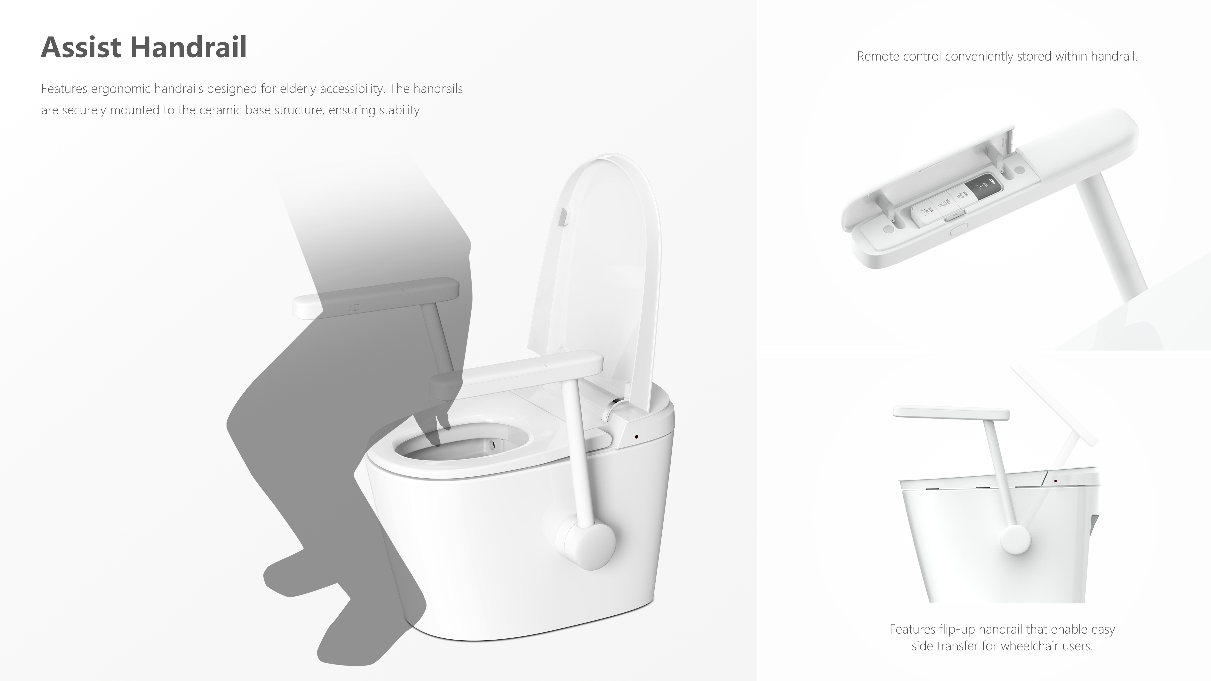 In our aging society, the elderly represent a vital community deserving thoughtful consideration. Meeting their needs reflects our commitment to both market innovation and social compassion. Recognizing the bathroom challenges seniors encounter, we've developed age-inclusive designs that ensure every user experiences equal comfort and independence. Our thoughtful integration of flip-up support handrails, intuitive controls, and specialized assistance features empowers seniors with confidence in their daily routines while maintaining dignity and self-reliance.