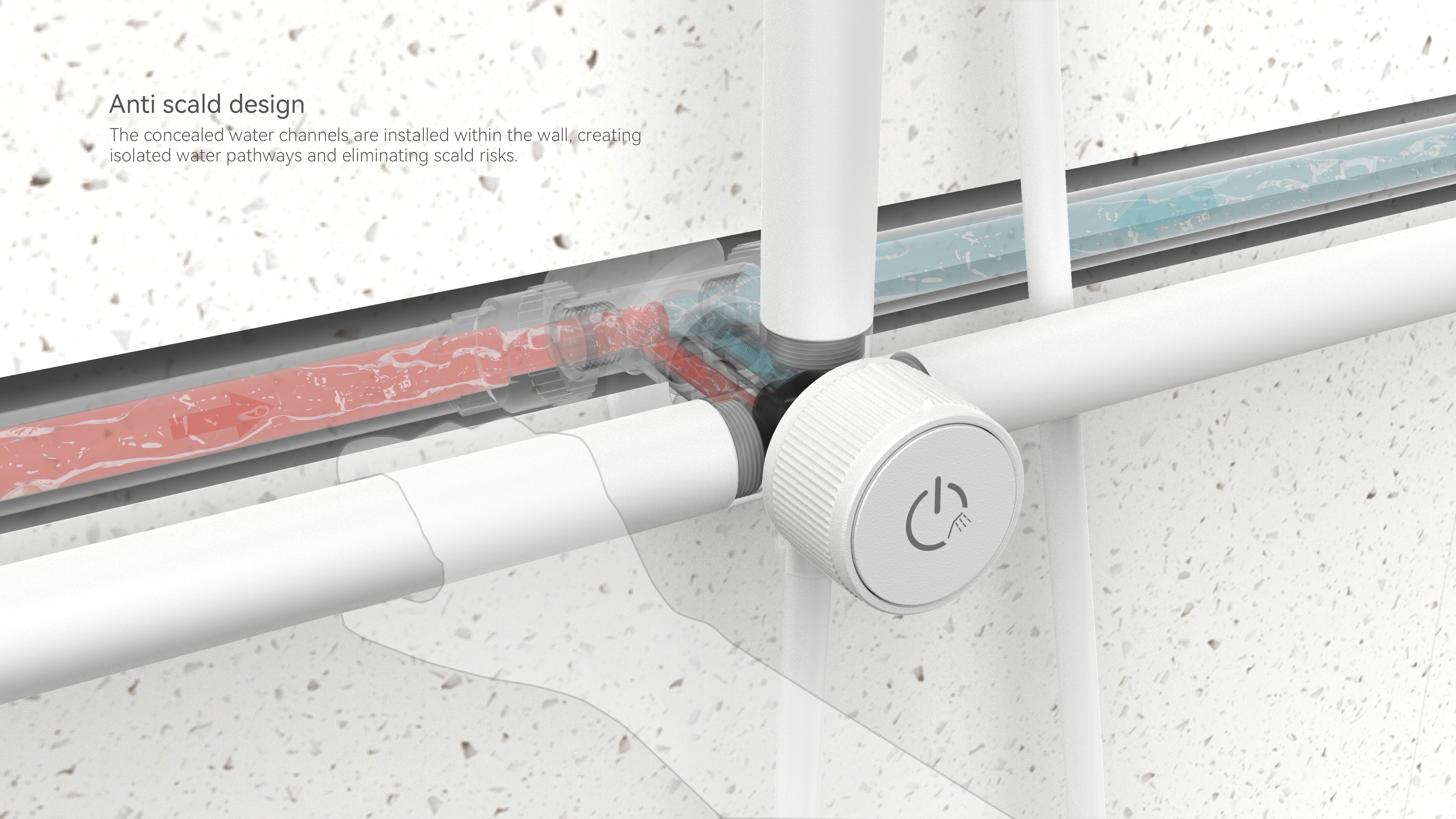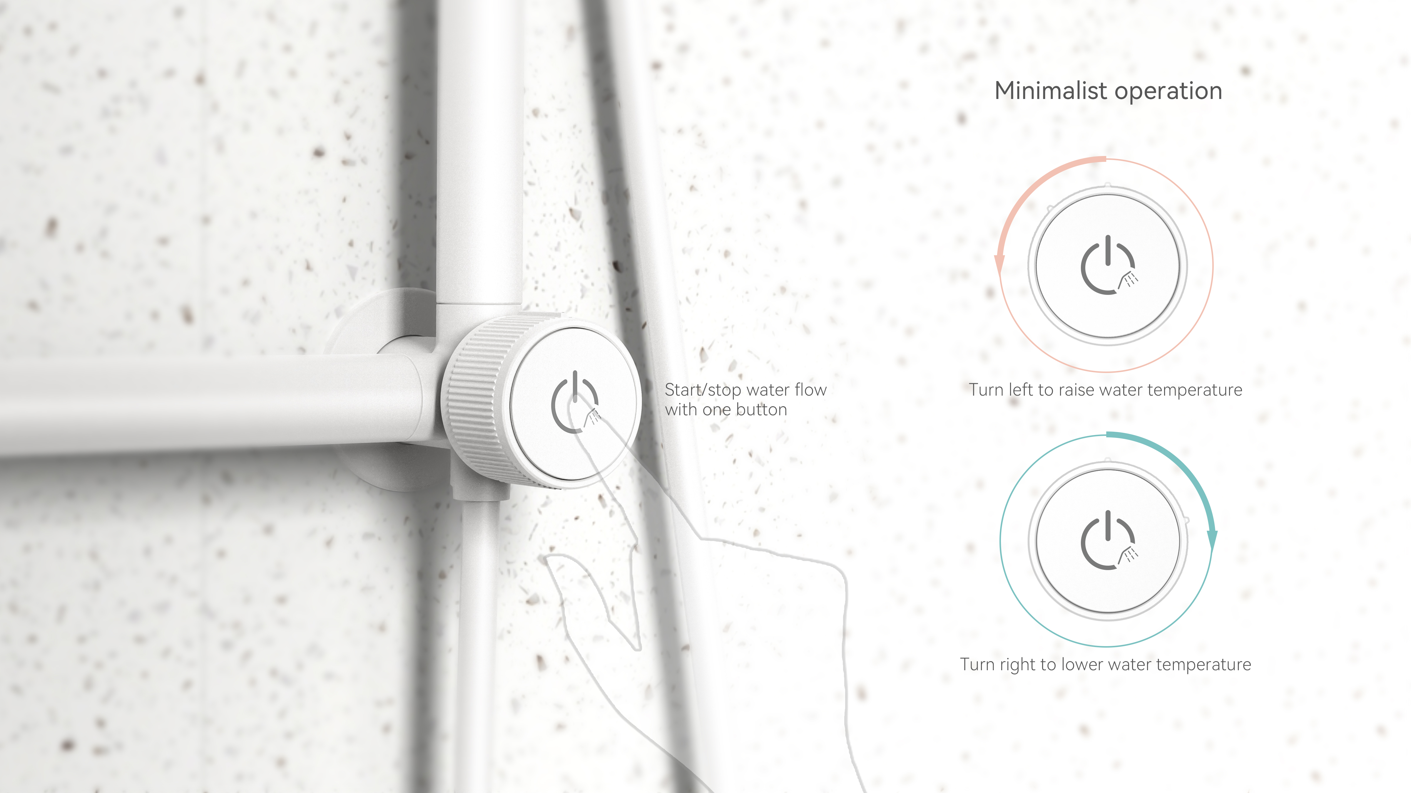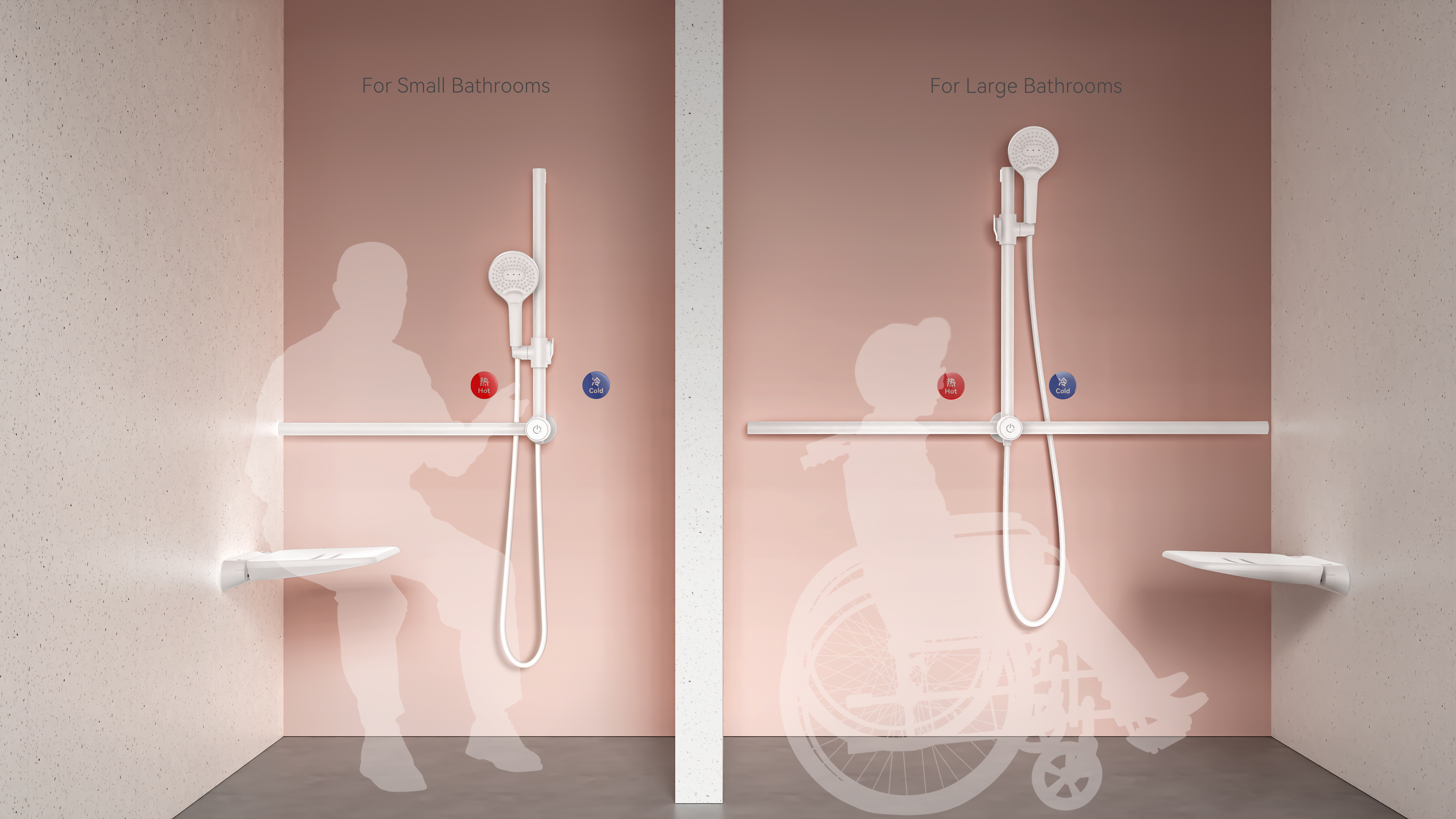 Amidst accelerating global aging, the Tender Care Shower addresses safety hazards for seniors and mobility-impaired individuals during bathing, enhancing dignity and safety in independent showering. Through structural innovation, it integrates handrails and shower fixtures into a unified system, paired with a foldable shower seat for space-saving efficiency. Designed with minimalist aesthetics for home bathrooms, it minimizes the perception of being "assistive medical equipment". Crucially, water channels and handrail structures are physically separated to ensure safety and reliability.