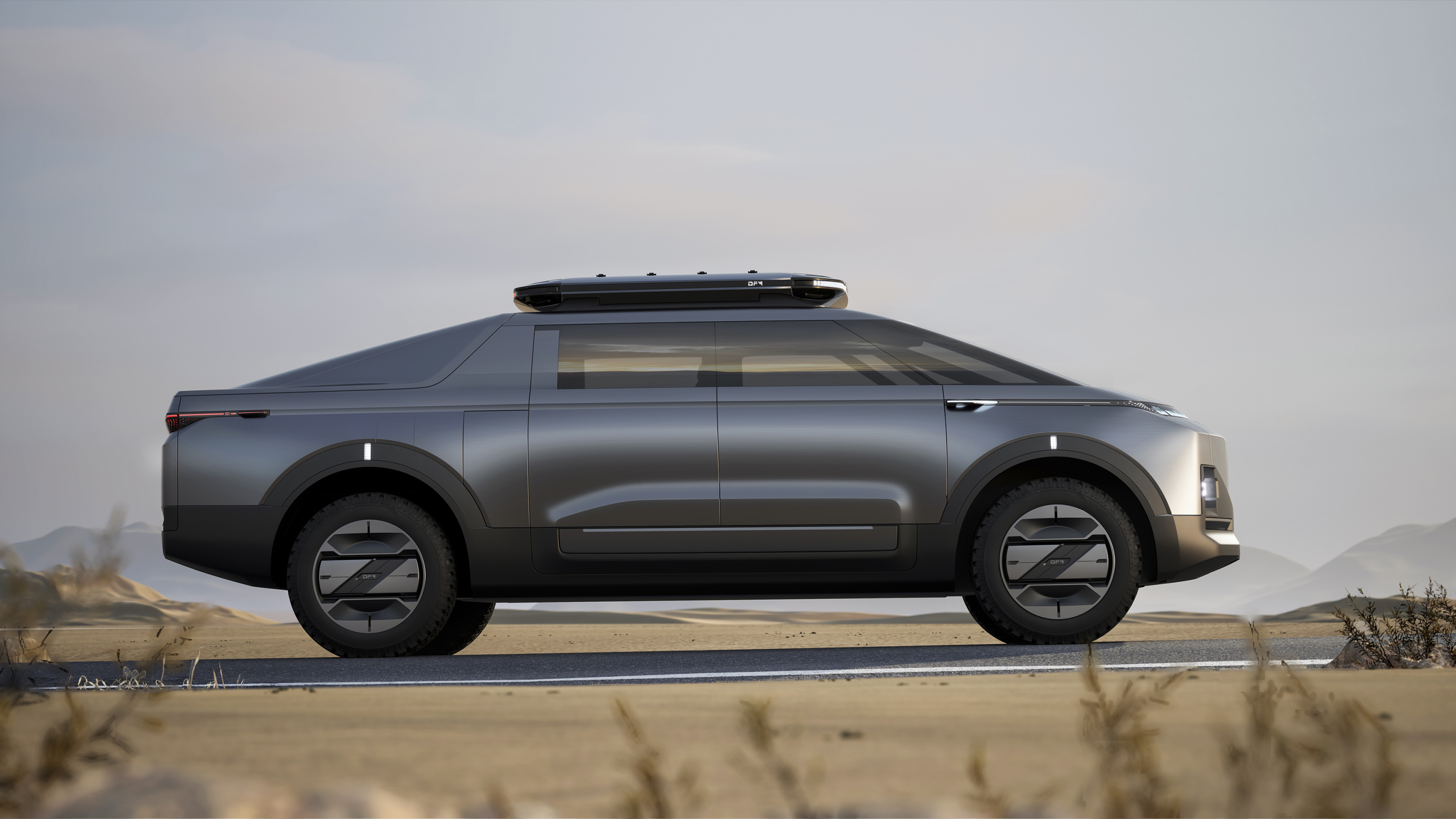 E-TRUCK is a crossover off-road pickup. Built on Dongfeng Skateboard Chassis and based on the design concept of "All-in-One", E-TRUCK integrates hardcore functions with outdoor lifestyles. It combines the practicality of the pickup with the versatility of the SUV, enabling the one-button mode switch to adapt to diverse scenarios like freight transportation, passenger transportation, and off-roading. With flexibly expandable cabin spaces and ingenious matches of inner modules, E-TRUCK caters to multiscene needs such as camping, fishing, and get-togethers.