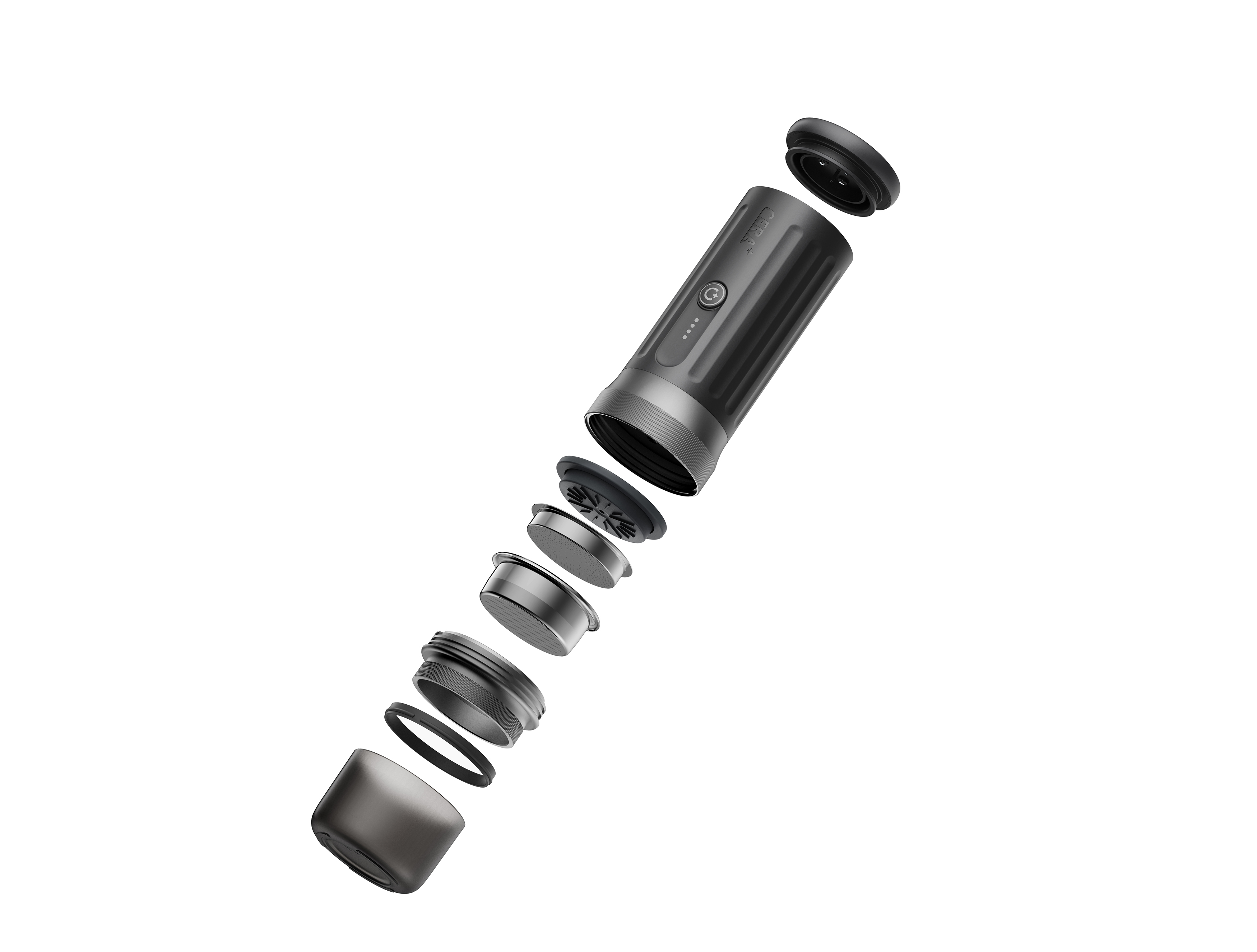 PCM03S-MAX is an electric portable espresso machine that integrates a 58mm metal portafilter with smart interaction. This espresso machine combines a professional extraction system with portability, aided by a high-capacity 13,500 mAh battery and an independent heating module to enable a complete brewing process without external power sources. Featuring a compact body and app-based control, it can quickly prepare high-quality coffee during outdoor trips or daily use. Through its minimalist design and highly integrated functions, it redefines the professional portable coffee maker.