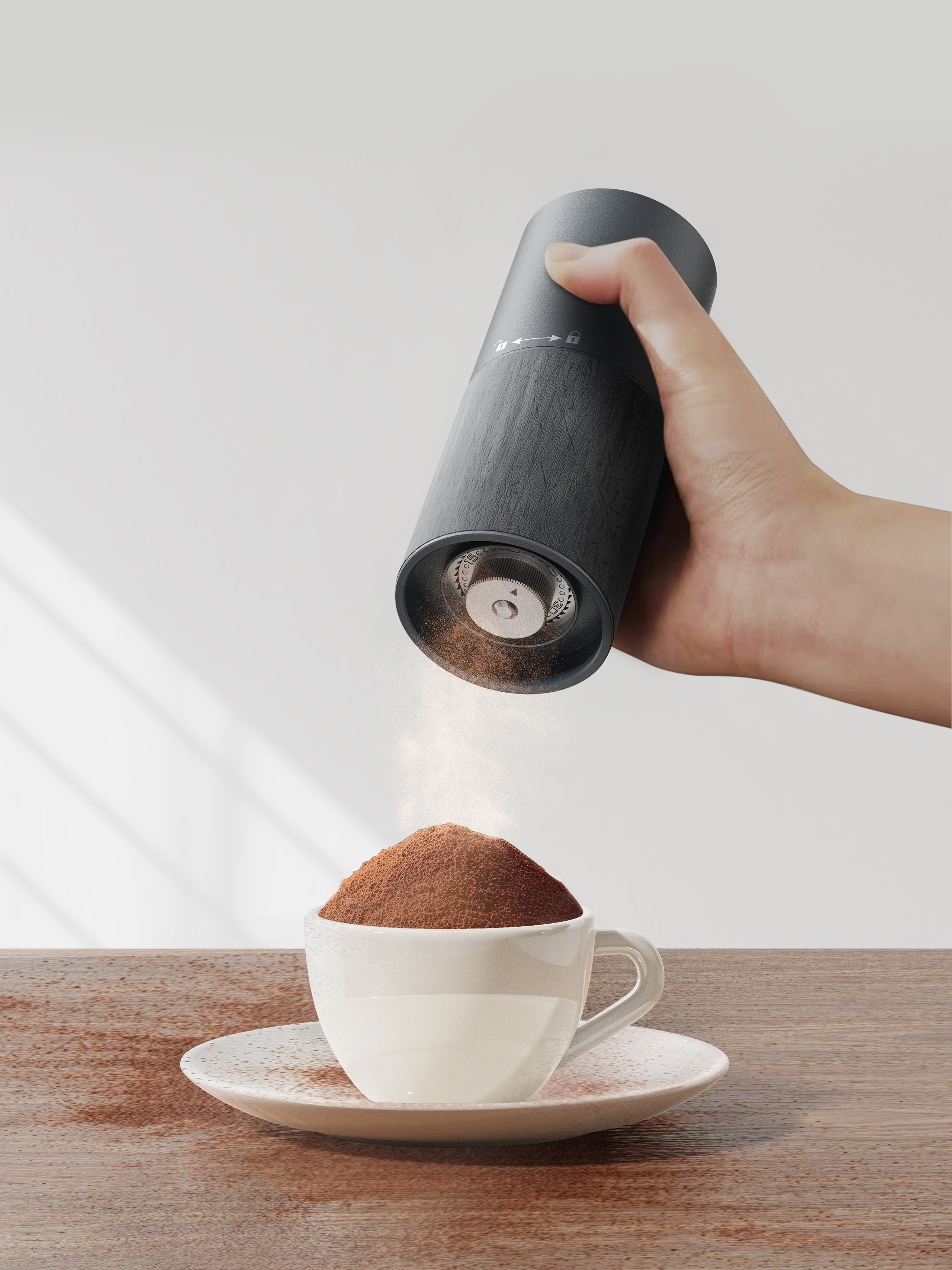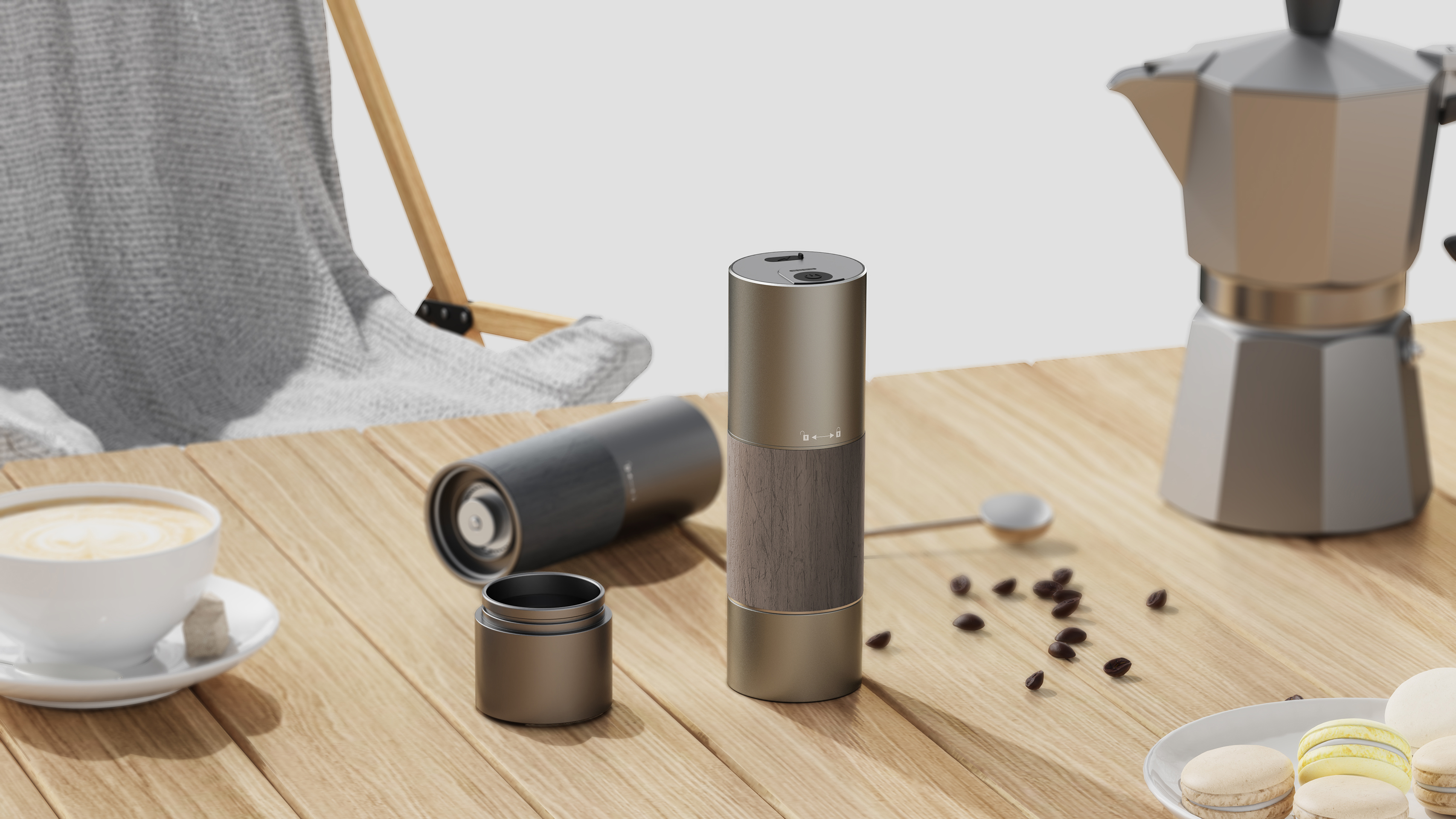 This is a portable electric coffee bean grinder. Featuring a lightweight and compact design, it delivers one-touch operation that perfectly balances simplicity and efficiency. Its precision-engineered structure and powerful motor ensure uniform grinding, fully releasing the aroma and flavor of coffee beans. With 90 adjustable grind settings, the device covers a full range of grind sizes from Turkish and espresso to Moka pot and pour-over. Its robust grinding power makes the process effortless and enjoyable, even for female users.