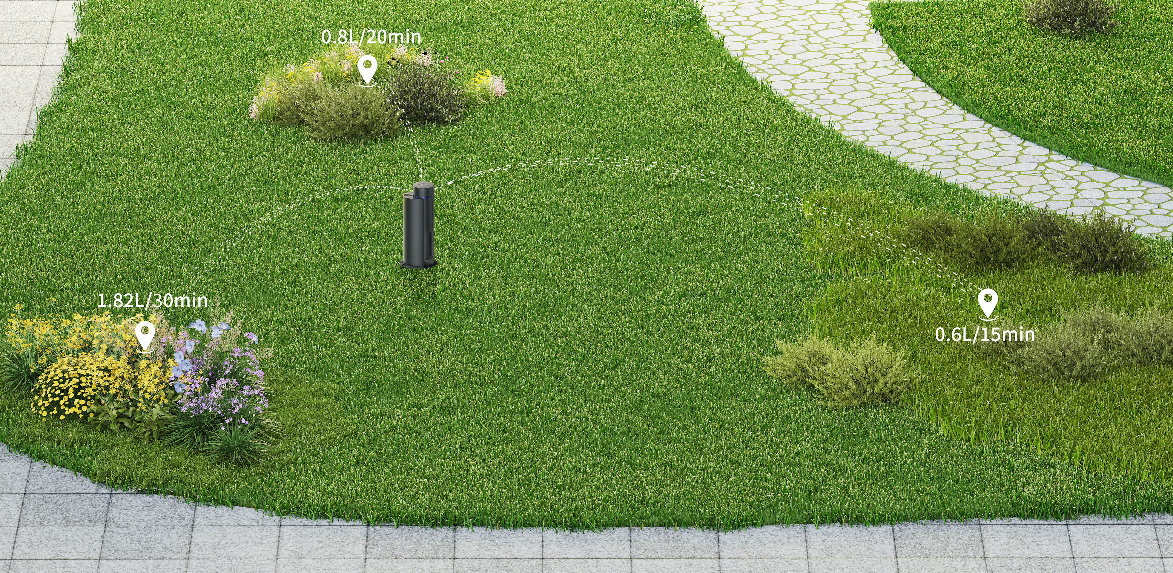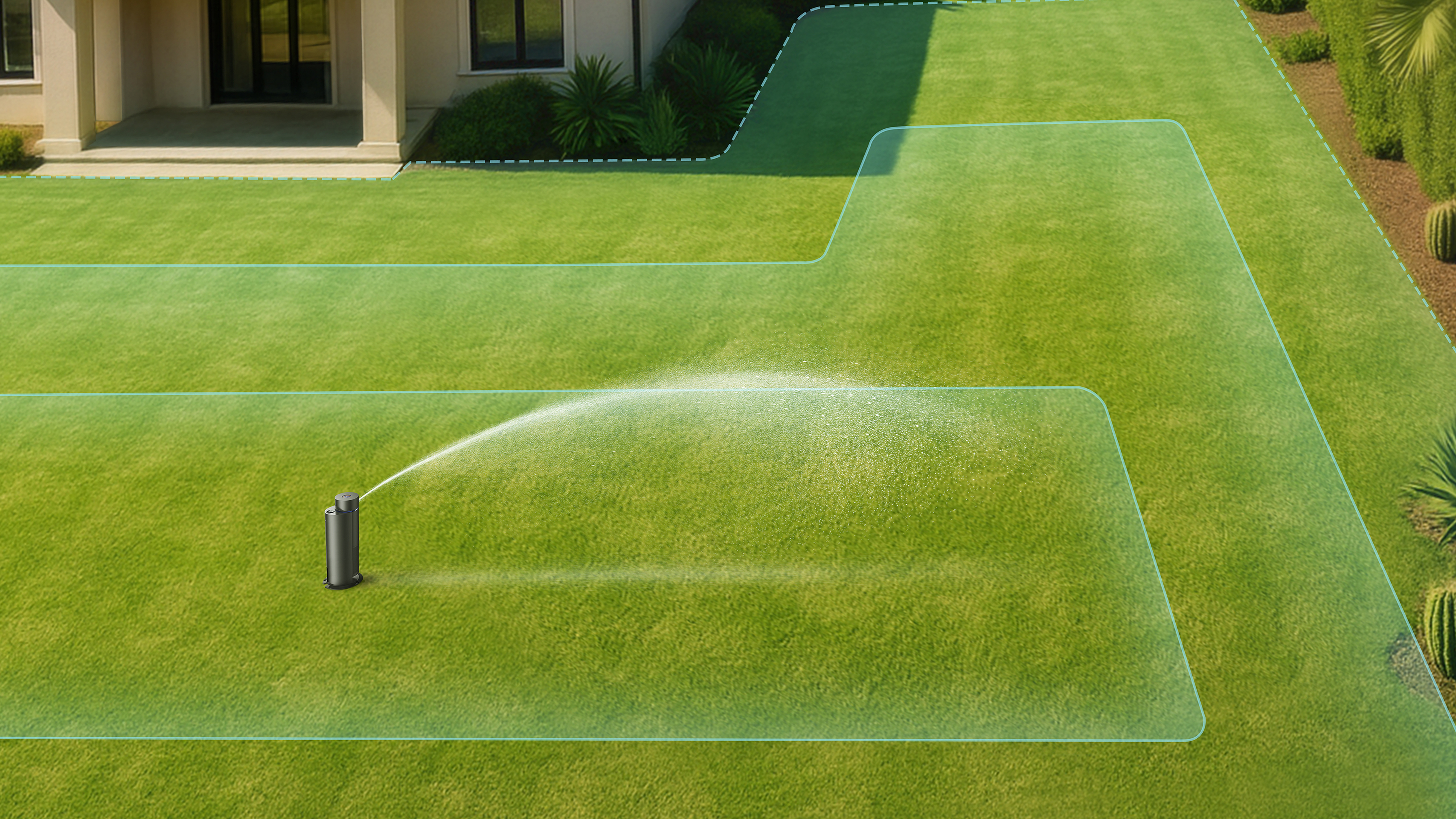 Traditional irrigation systems with high-pressure water irrigation may harm plants and deteriorate the overall beauty of the lawn. They have a limited range and fail to meet the needs for watering diverse lawns. Featuring an industry-first natural rainfall-like watering mode, the IrriSense achieves 360-degree horizontal irrigation, paired with proprietary contour-mapping technology for comprehensive coverage and zero water waste. Aided by weather and rain sensors, it adapts plans in real time, reducing waste and conserving water.