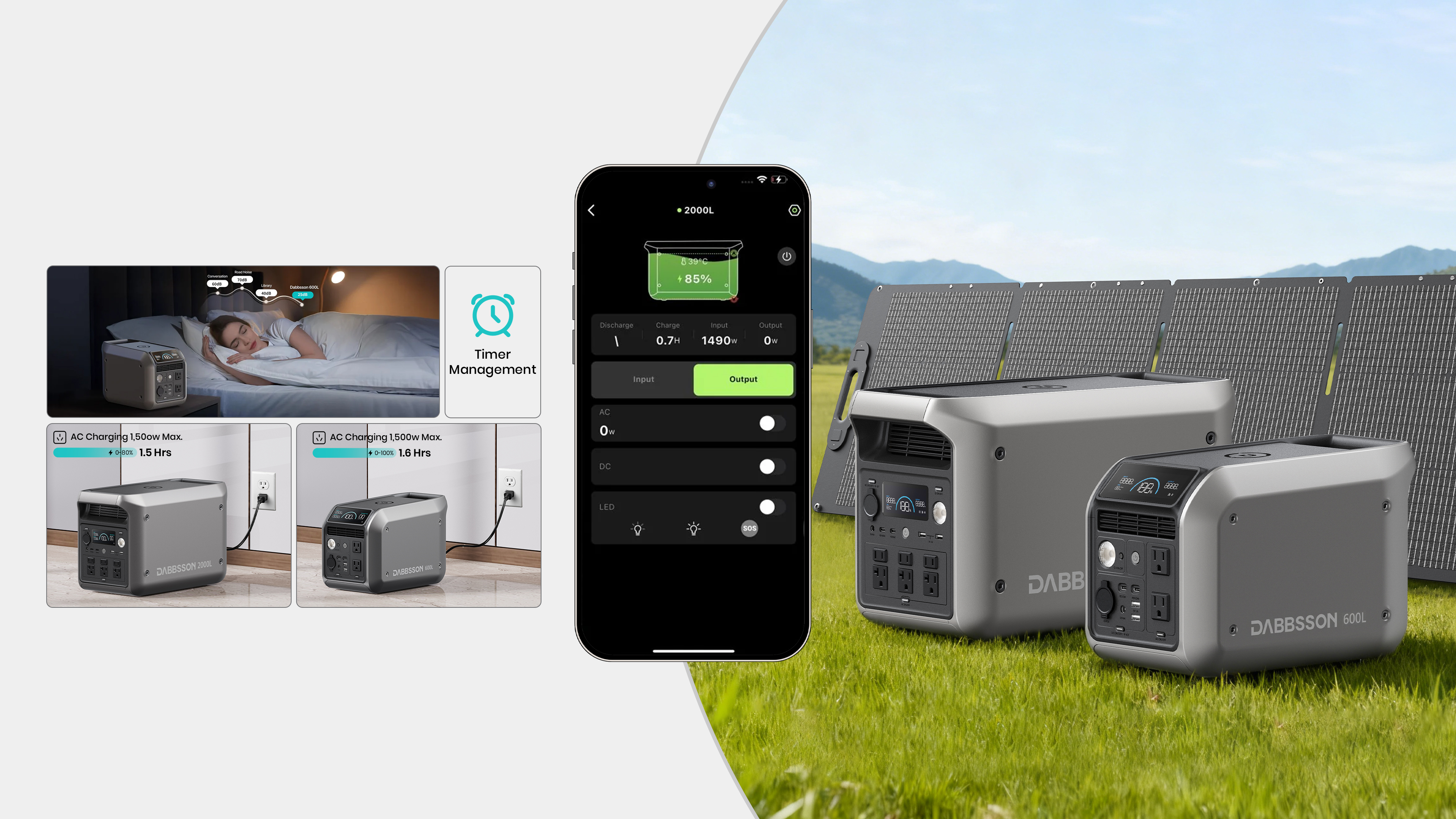 Dabbsson 2000L/600L is specifically designed for home emergency, outdoor activities, and multi-device power supply scenarios. Featuring a CTB integrated structure, ultra-high energy density cells, and a micro high-efficiency inverter, it achieves a 33% reduction in volume and a 1/3 reduction in weight. It has two models, 2000L and 600L, supporting the output of 3,300W and 900W, respectively, capable of simultaneously powering 12 and 8 devices, with a 15ms seamless switching capability, it delivers high-power output and safety for all scenarios with portability.