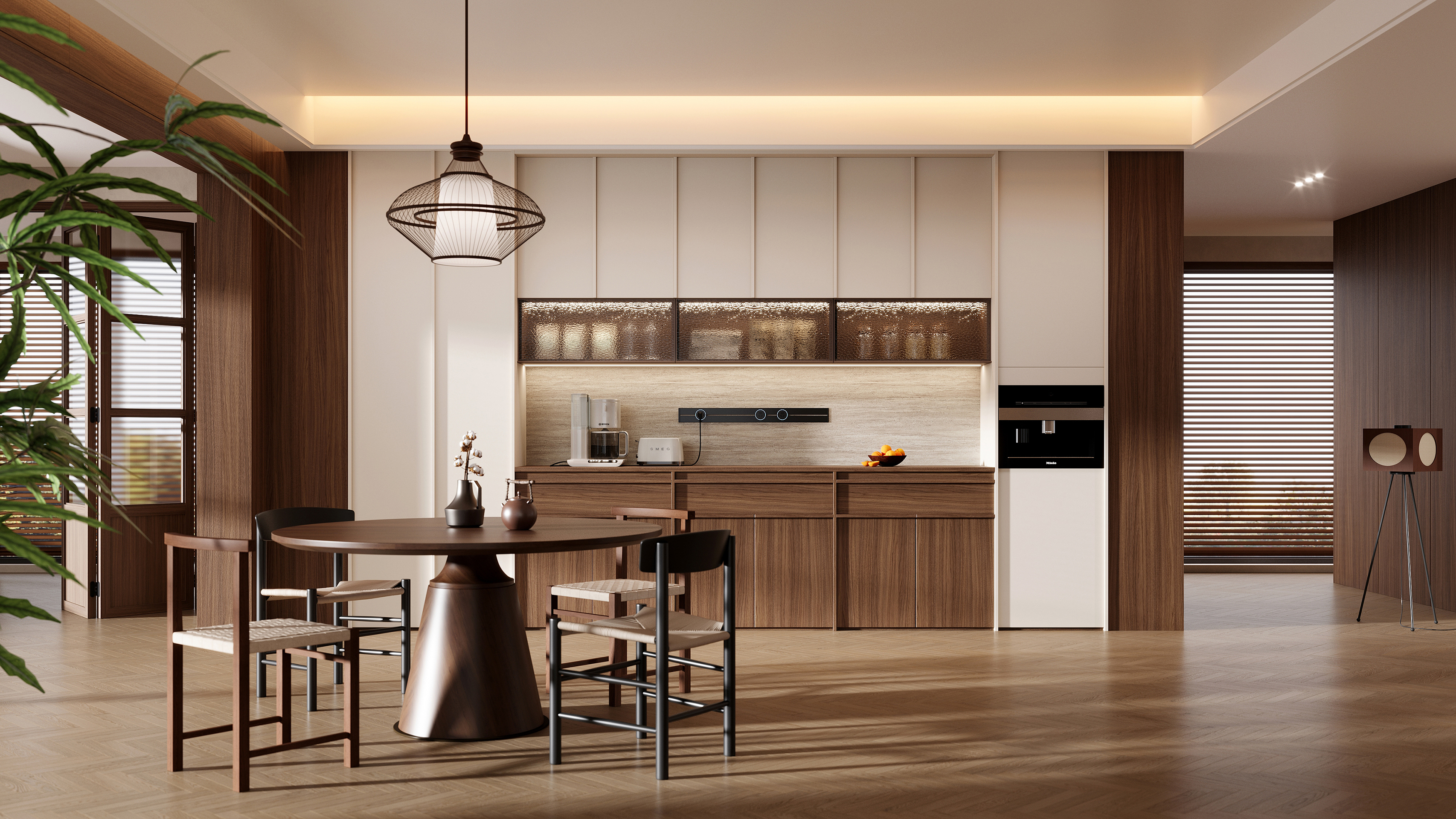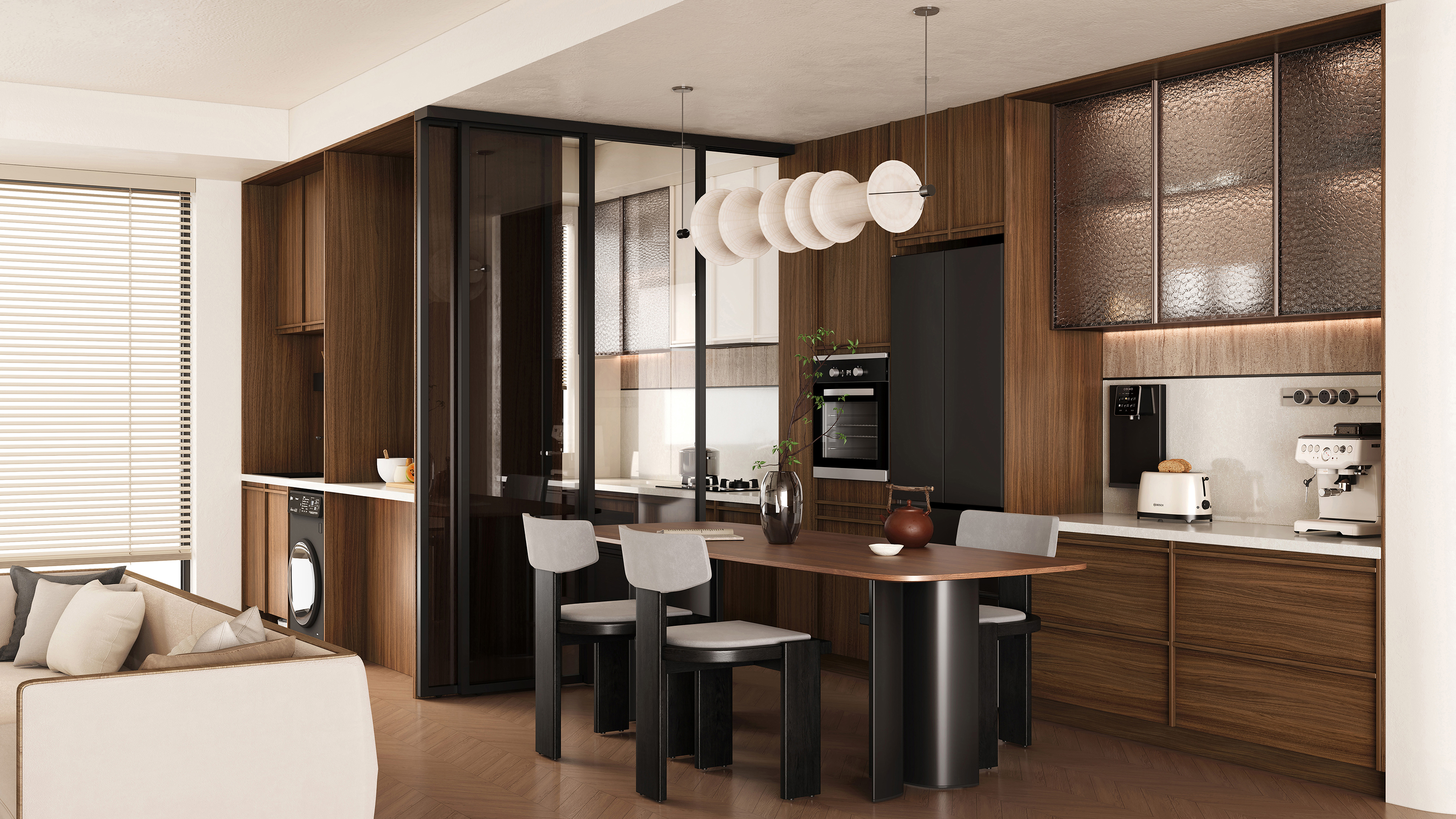Centered around "Slow Living in a Warm Home", this series creates a living space that is emotionally warm yet highly practical for newlyweds. A flexible skeletal door system unifies wardrobes, cabinets, doors, and walls, blending mid-century charm with minimalist order. The open LDKB (Living, Dining, Kitchen, Balcany) layout removes barriers, fostering daily connection for the couple while offering a welcoming space for weekend gatherings with friends and family. This design responds to the dual needs of contemporary young groups for both home comfort and social ritual.