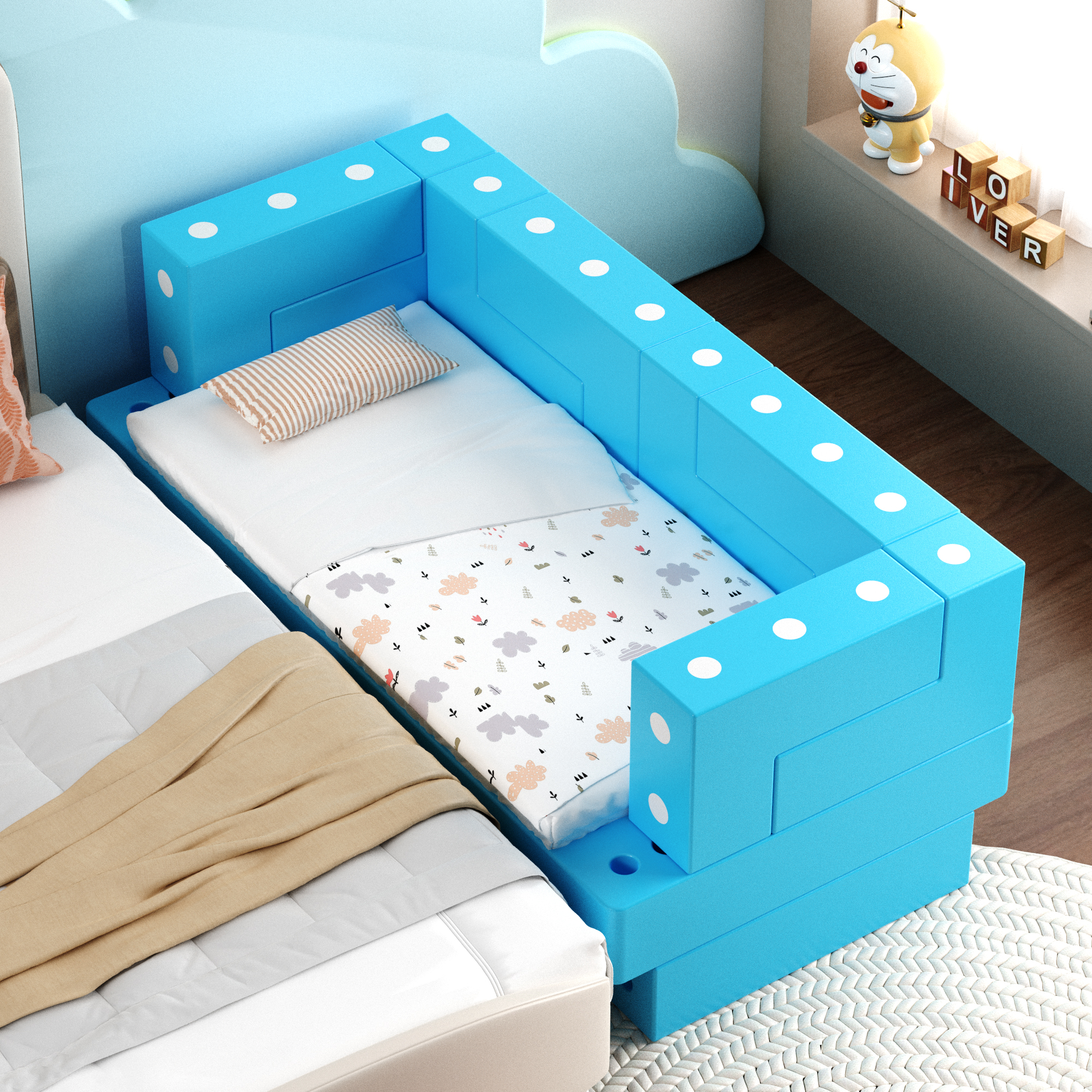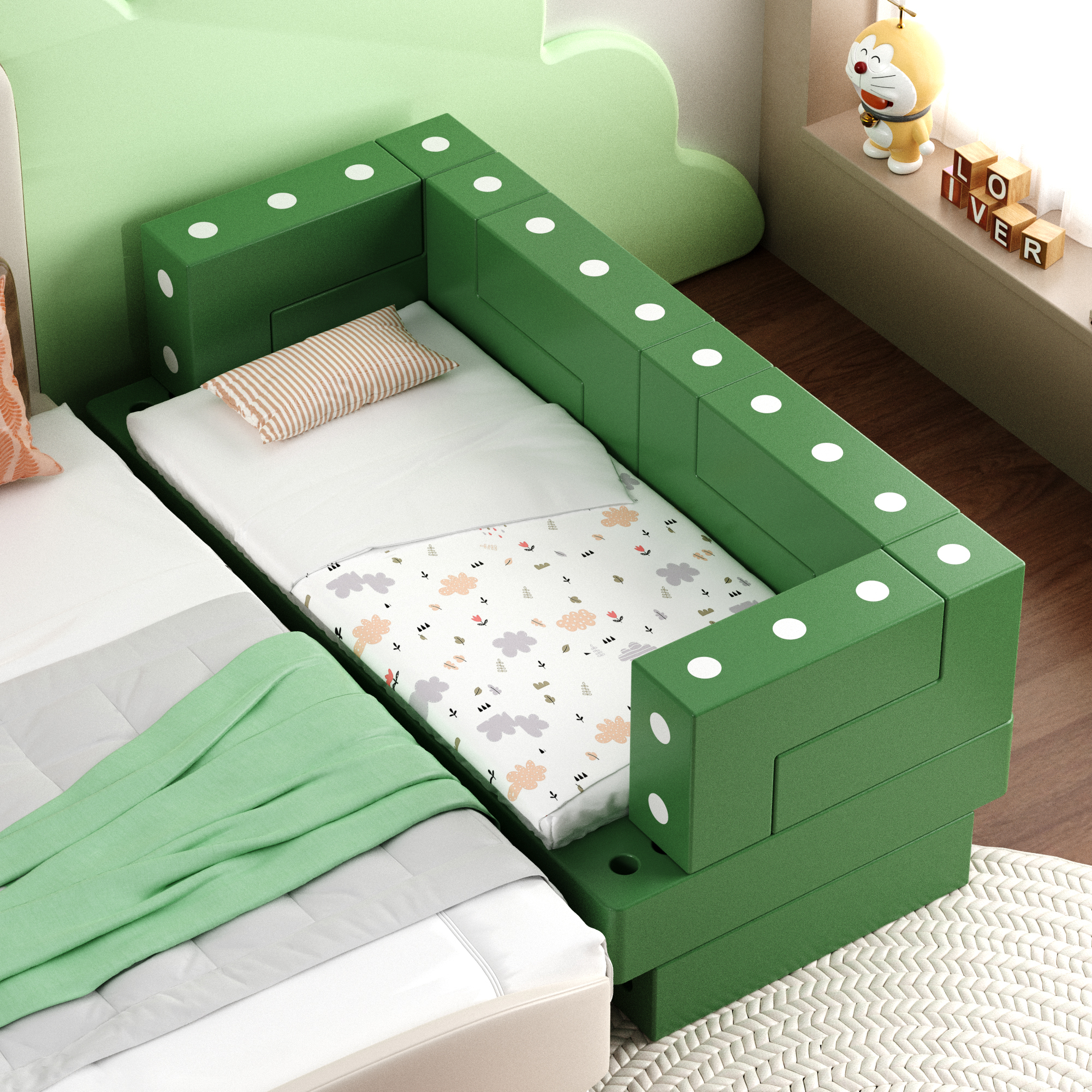 The Kuai Kuai Bed revolutionizes traditional auxiliary beds—often limited in function and lifespan—with its innovative modular design, aiming to be a furniture piece that "grows" with children. It enables flexible combinations to function as a standalone bed for infants and children, or to pair with an adult bed as an extended sleep solution (expandable to over 2.1 meters), seamlessly adapting to evolving needs from early childhood to adulthood. Beyond sleeping use, it can also be easily transformed into a sofa, pet house, or training space, offering versatile utility and lasting value.