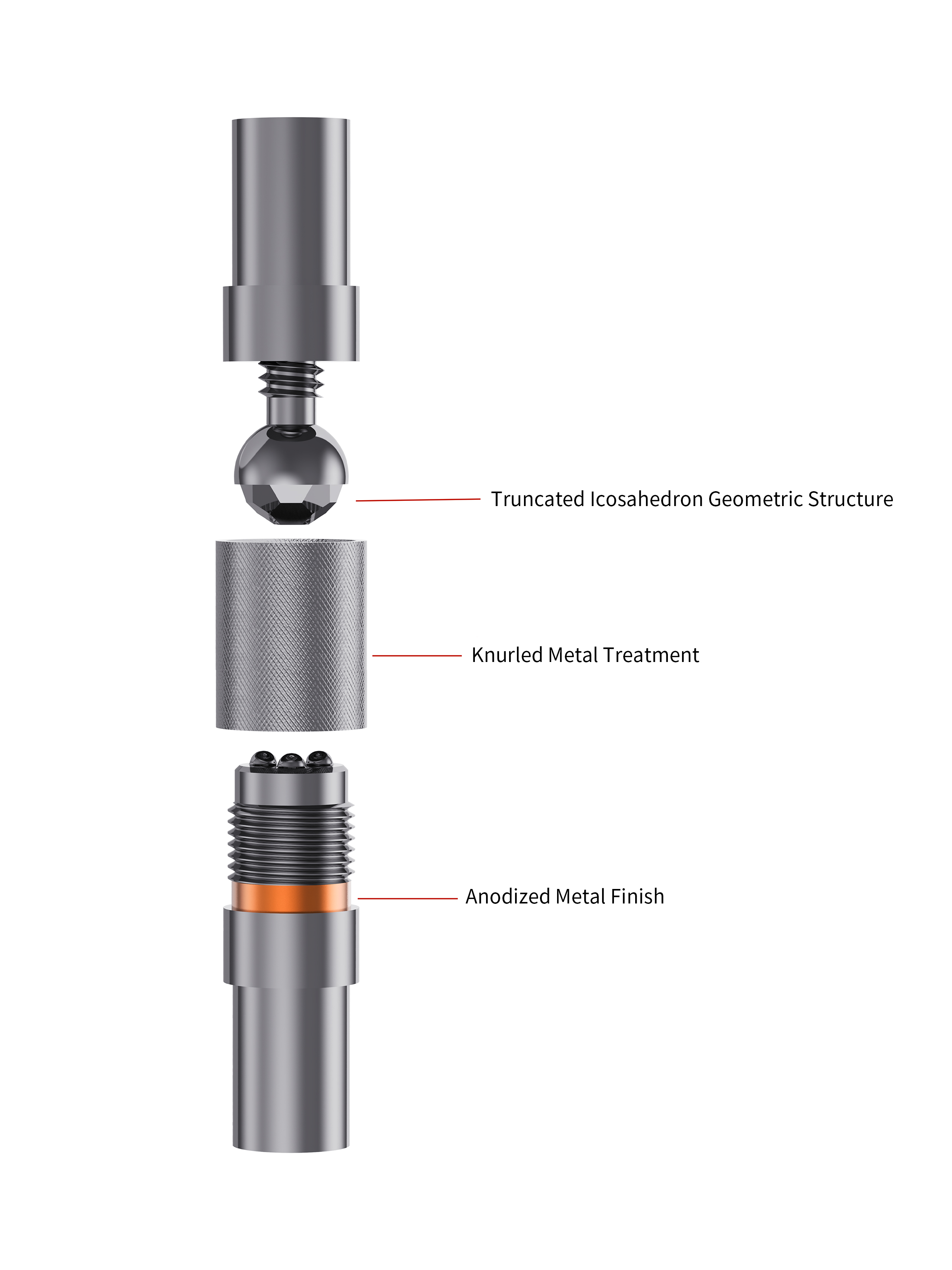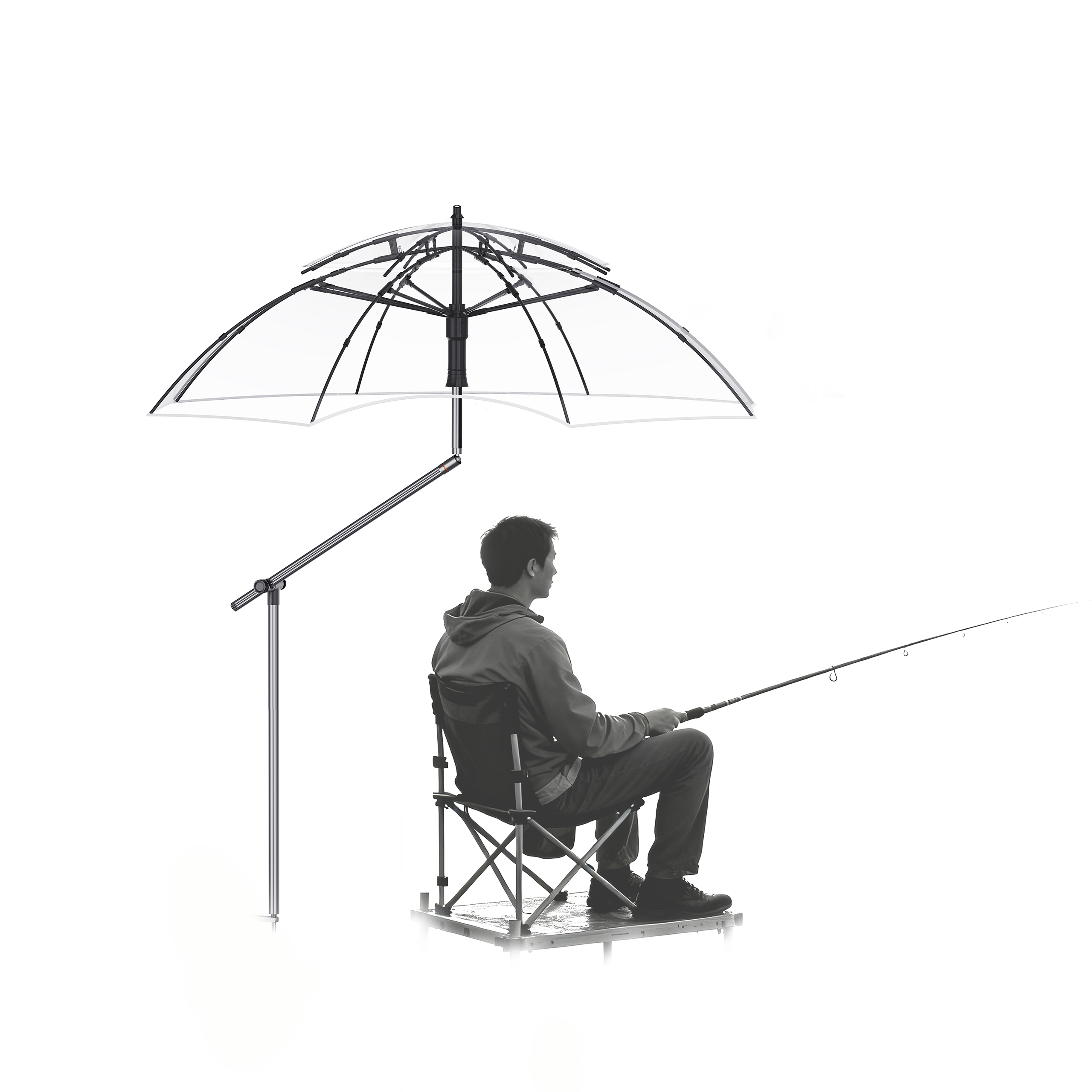 Guided by the philosophy of "Joy First, Catch Second", this robotic arm introduces an innovative spherical omnidirectional structure for flexible angle adjustment of the fishing umbrella, transcending traditional unidirectional designs with limited angling experiences. An internal truncated icosahedron locking mechanism ensures exceptional stability at any angle, while the knurled metal connecting sleeve increases friction for a secure grip, balancing flexibility and stability. The sleek geometric form, combined with an anodized metallic finish, creates a distinctive aesthetic.