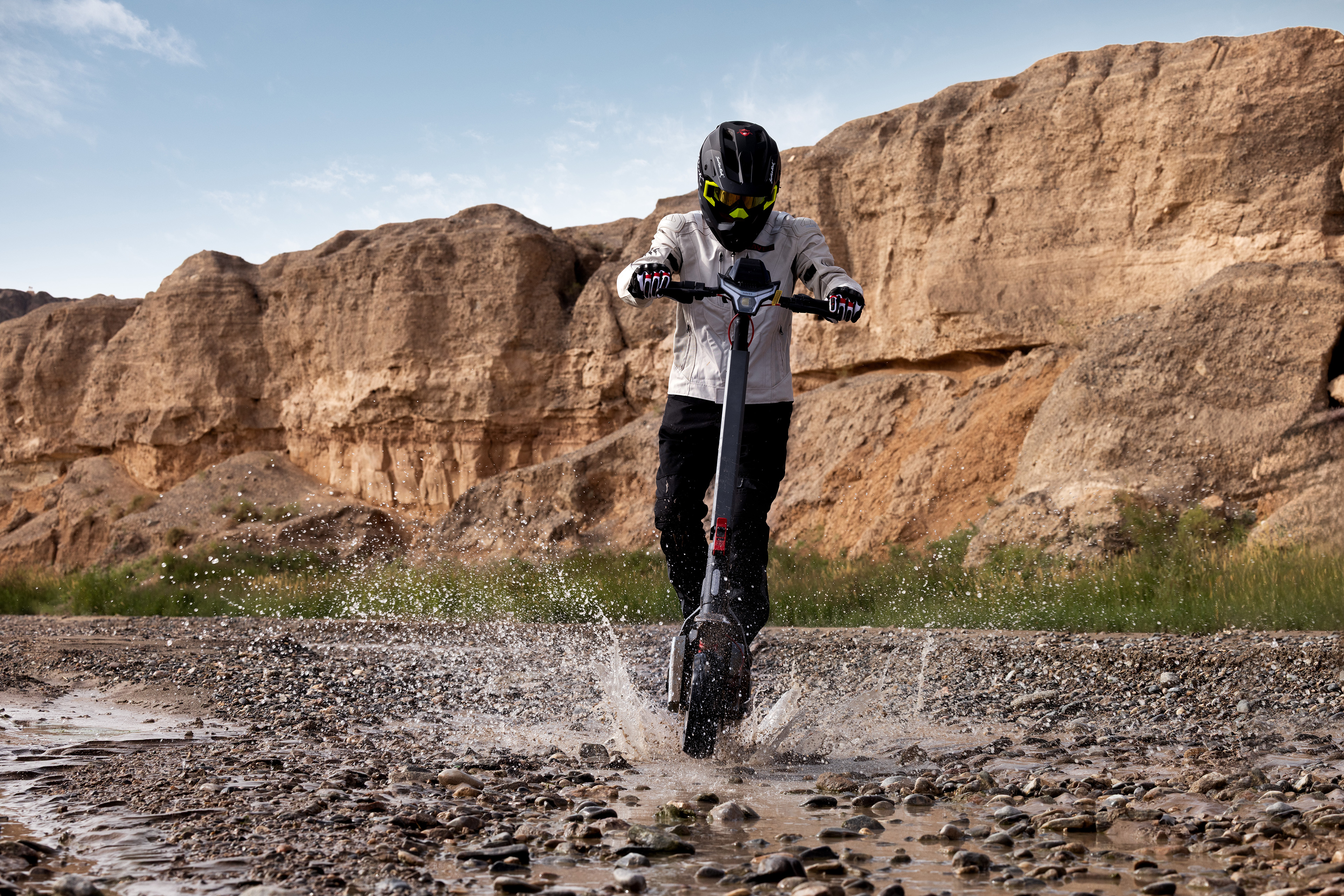 XT5 is an electric scooter that combines mecha aesthetics with all-terrain performance. It has dual 2200W motors and an ultra-long 110km range. Its front/rear dual rocker spring shock absorbers deliver excellent damping. It features new 12-inch all-terrain wide tires which ensure stability and safety on all road conditions, delivering an unparalleled riding experience. The scooter adopts a mech-style design that blends futurism & practicality. It also offers multiple configurations and an extended-range external battery, giving users ample options.