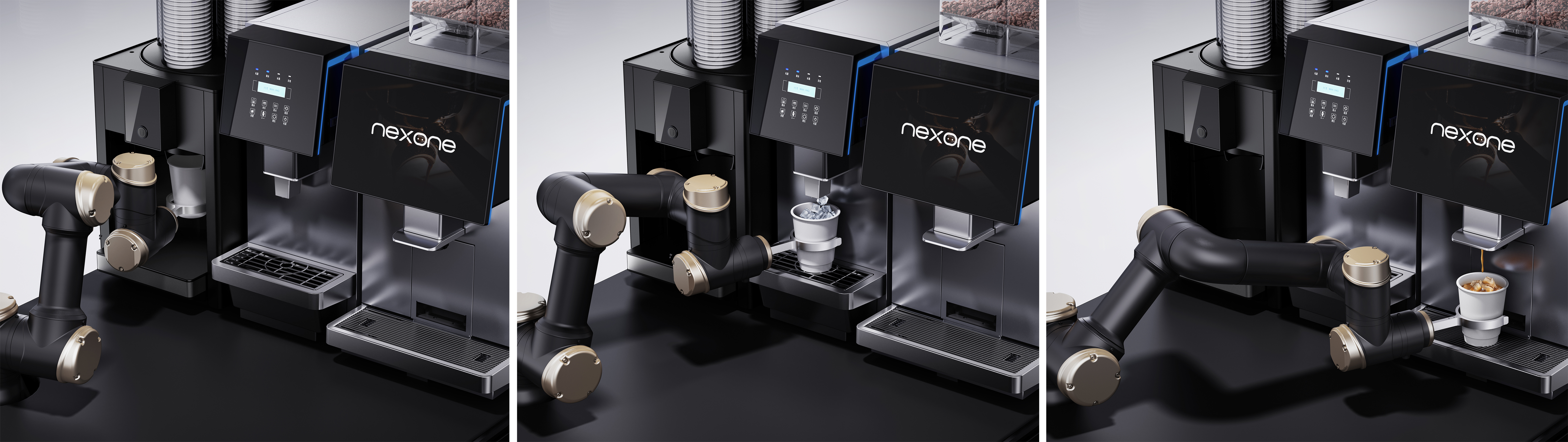 NEXONE is a robotic coffee machine occupying 1.3m² of floor space. It has full-process coffee making—from cup retrieval to latte art—within a compact footprint via its highly integrated single-arm robot. It supports flexible expansion of ice cream making, baking and waste liquid recycling via a modular architecture, enabling fully self-service operation without manual supervision. It boosts service frequency and content in public spaces, turning high-quality coffee from labor-dependent service into an efficient, stable and replicable public service that upgrades urban beverage consumption.