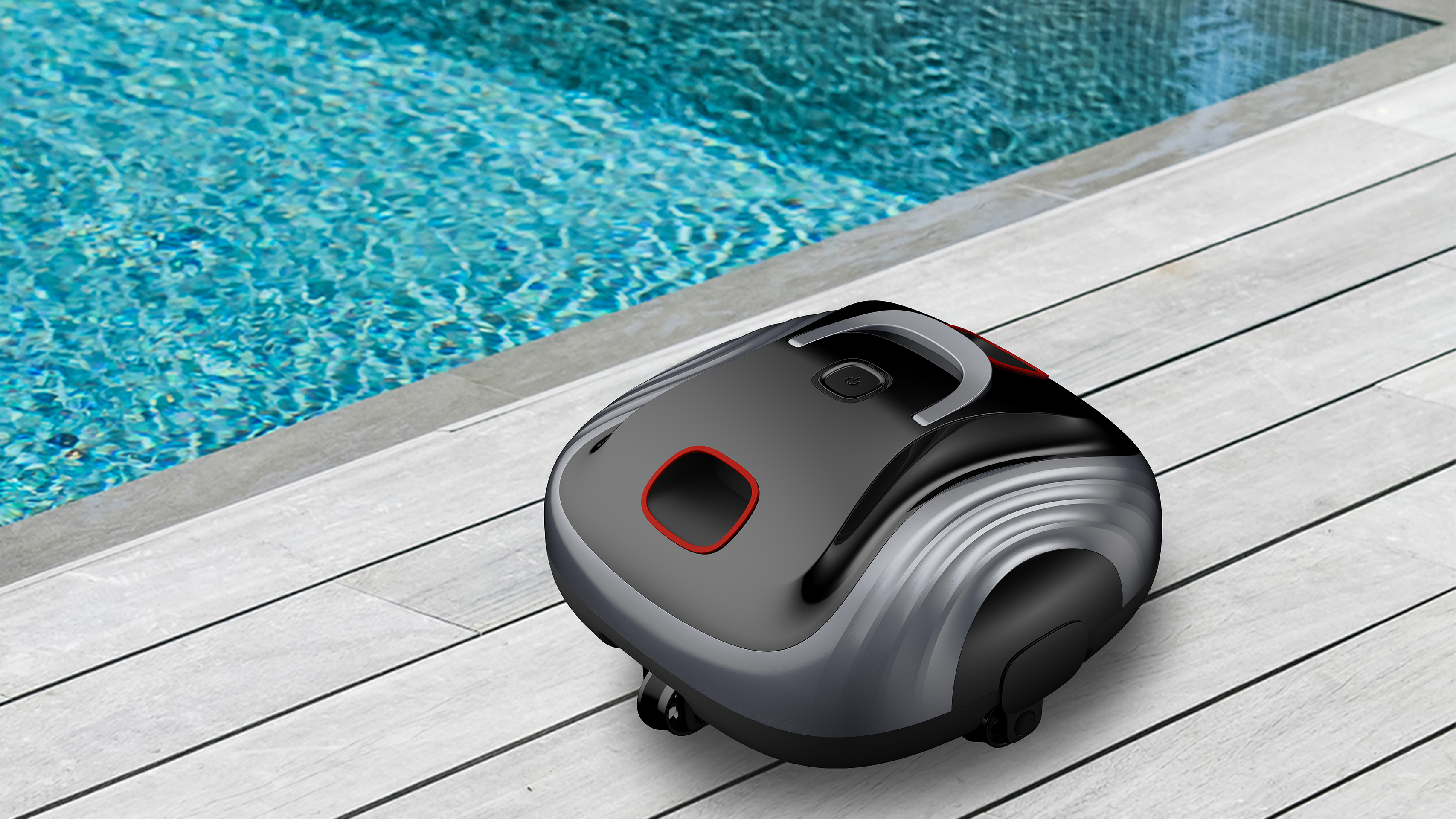 This robot redefines pool maintenance as a delightful experience. Its sports car-inspired design, including a mirror effect and gradient red buttons, is hydrodynamically optimized. It solves the pain point of mediocre appearance of standard cleaners, transforming utility tools into visual focal points that reflect the owner's pursuit of style and performance.