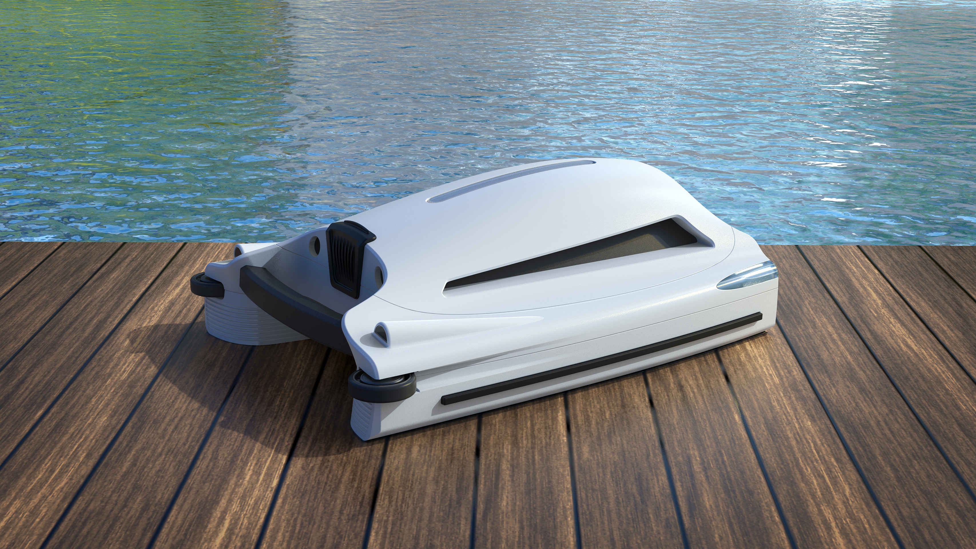 Observing water flow dynamics, the Blue-X robot embodies elegance and efficiency through its streamlined curves. Its soft white color blends with the pool environment, while intuitive LED indicators communicate status clearly. This design moves beyond purely technical forms by creating a pleasurable visual element that works in harmony with the water, turning maintenance into an aesthetic feature.