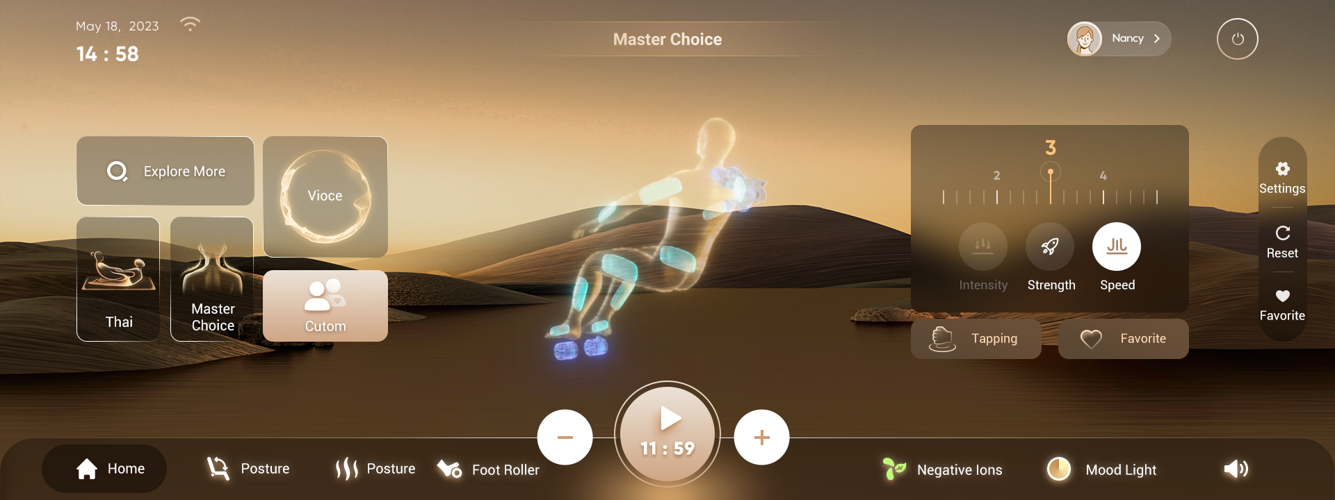 EC638 is the world's first massage chair equipped with an AI EEG headset. It enables monitoring of users' brainwave and pulse waves, combined with a self-developed soreness detection system and AI analysis, achieving a scientific assessment of the user's physical and mental health status. Paired with the LiFlex smart guide rail, 5D massage movement, self-developed movement strength feedback sensing system, and massage master-inspired techniques, it delivers scientific, targeted, and personalized massage services, helping alleviate the negative effects of sub-healthy state.