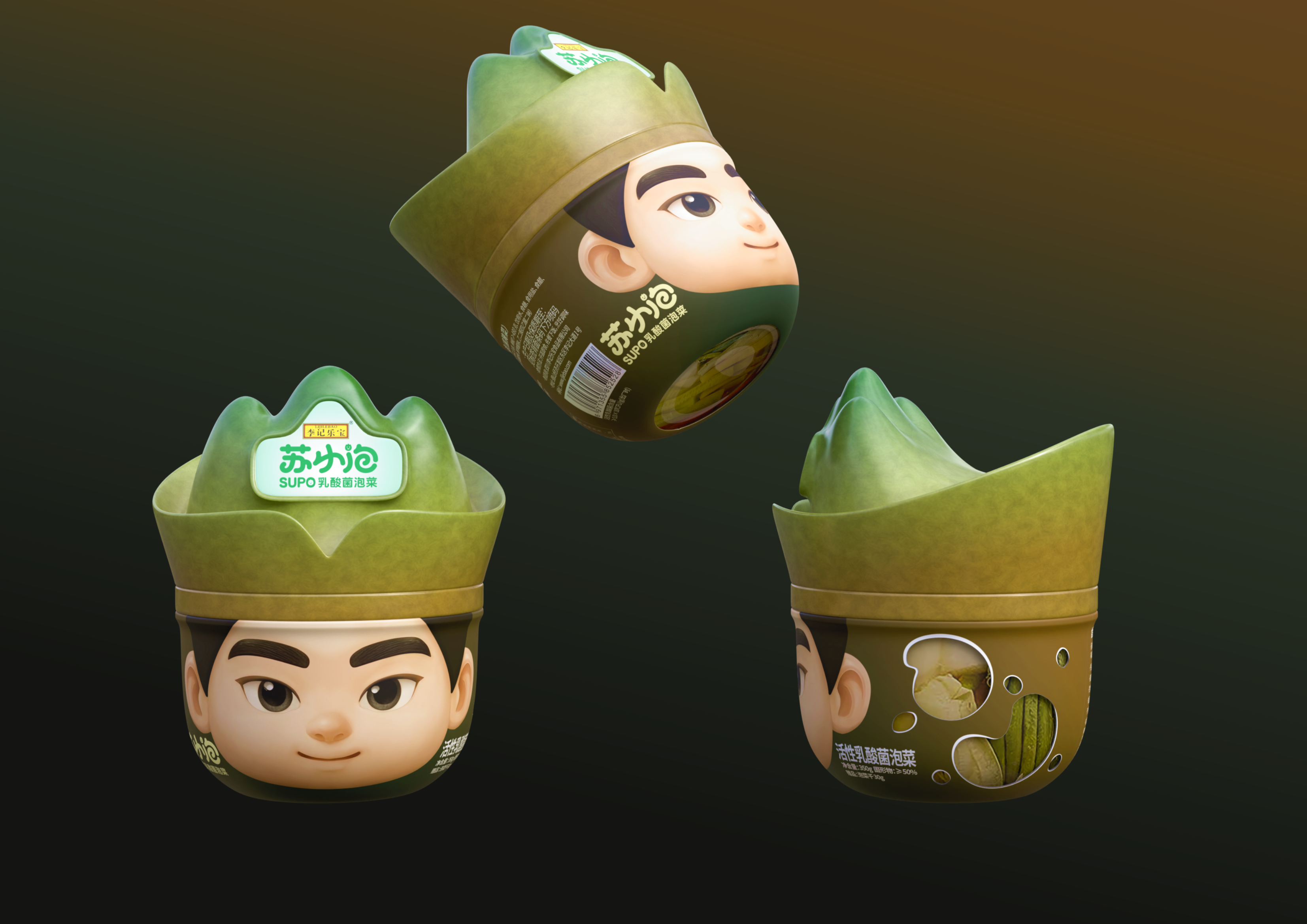 1.Background & Trends: Integrates the IP trend of Su Dongpo culture, caters to consumers’ demand for "cultural + practical" packaging, and aligns with the market boom of portable snacks and healthy fermented foods. 2.Existing Pain Points: Traditional pickle packaging has single function (only for one scenario), weak cultural expression, and waste from excessive packaging. 3.Solutions: With "Su Xiaopao" IP as the core, the "one jar, two ways" design (fermented pickles inside + ready-to-eat snacks outside) balances cultural communication, scenario adaptation and sustainability.