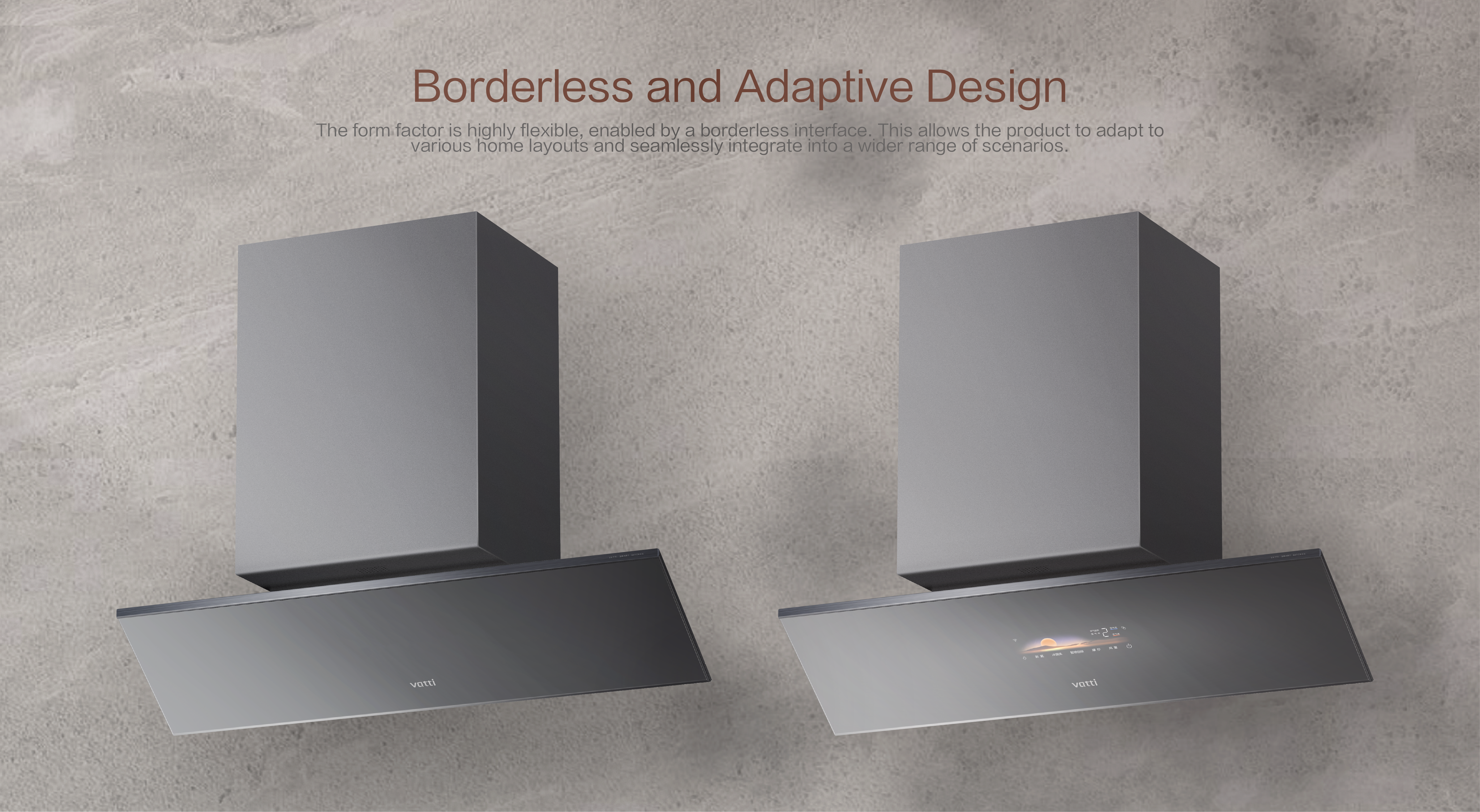E6095ZS "Hidden Realm · Sense-Free Control" High-End Microwave Radar Range Hood UXI Design We redefine the kitchen experience from the user's perspective: invisible in form, serene in ambiance. Controlled by radar, pure nature enjoyed. Real-time PM2.5 visualization integrates natural breathing into the kitchen. This fully concealed, intelligent range hood aligns with high-end kitchen aesthetics. Its completely embedded design disappears into cabinets when off, with interfaces seamlessly integrated for visual unity. Microwave radar enables touch-free gesture control—adjust fan speed or toggl